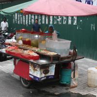 Farkaséhesen érkeztünk, úgyhogy első körben megkerestük, hogy hol esznek a helyiek. A hotel lábánál rögtön egy forgalmas teret találtunk, utcai árusokkal és rengeteg emberrel. Kellemes kultúrsokk ért minket: pezseg az utca a sokféle embertől, a színes ruháktól, a fűszer és füstölő illattól. A demográfiai adatok alapján a lakosság 46%-a őslakos maláj, 43%-uk kínai és 10%-uk indiai. A vallás is eszerint alakul: az emberek 46%-a muzulmán, 36%-a buddhista, 8%-a hindu, 6%-a keresztény és 4% egyéb vagy semmilyen. Az utcán gyönyörű színes ruhákban, fejkendőkben, vagy száriban járnak, de sokan hordanak nyugati ruhát is, elég elfogadó és heterogén társaság.