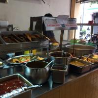 Végül egy helyi kifőzdébe mentünk, ahol a kezünkbe nyomtak egy tál rizst, amire magunknak kellett szedni feltétet kb. 20 féle választékból. A keleties fűszerezésű halak, húsok és saláták pont kellemesen csíptek és minden eszméletlen finom volt. Kést és villát csak mi kaptunk, kilógtunk a sorból, a helyiek ugyanis mind kézzel ettek, de olyan jóízűen, hogy majdnem utánuk csináltuk.