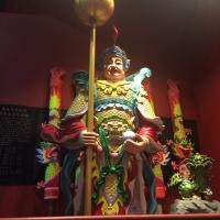 Végül hazafelé mégis találtunk rendes ünnepséget. Egy sintoista templomba sétáltak be többen, ahová mi is követtük az embereket. Hatalmas piros/arany szobroknál imádkoztak a népek, meg füstölőt gyújtottak - sőt nagy marék papírokat egy kemencénél, hogy minél nagyobb legyen a füst - és azzal járultak a szobrok elé. Néztük egy kicsit a duruzsolást, aztán innen is továbbálltunk.